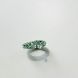 Harumi.Koumoto(・)さんとのコラボのアクセサリーで、国産の高品質なガラスビーズを輪の形に編み込んでいます。