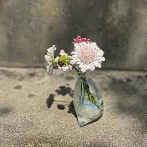 少し傾いた形で、植物をいけるととてもかわいく、楽しめます。