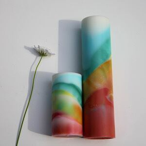 ・キャンドルは染料により色付けされている為、床、家具などに直接置かれると色が付着してしまう恐れがありますのでご注意ください。