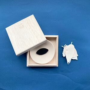 6種類の葉っぱのお香HA KOと、不燃性マット、素焼きのお皿が木箱に入っているセットです。