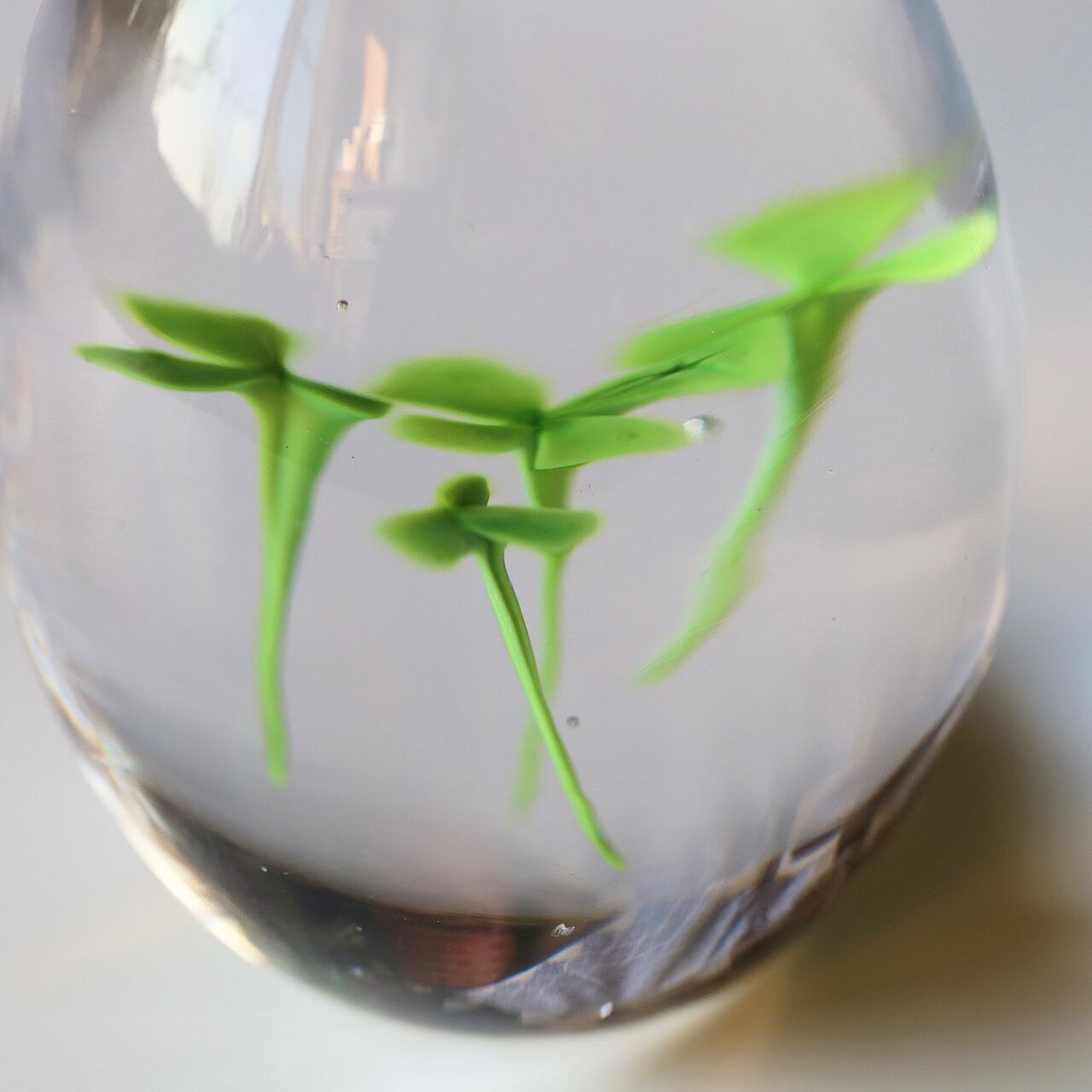 イイノナホさんの代表作のひとつ、クローバーのペーパウェイト。
