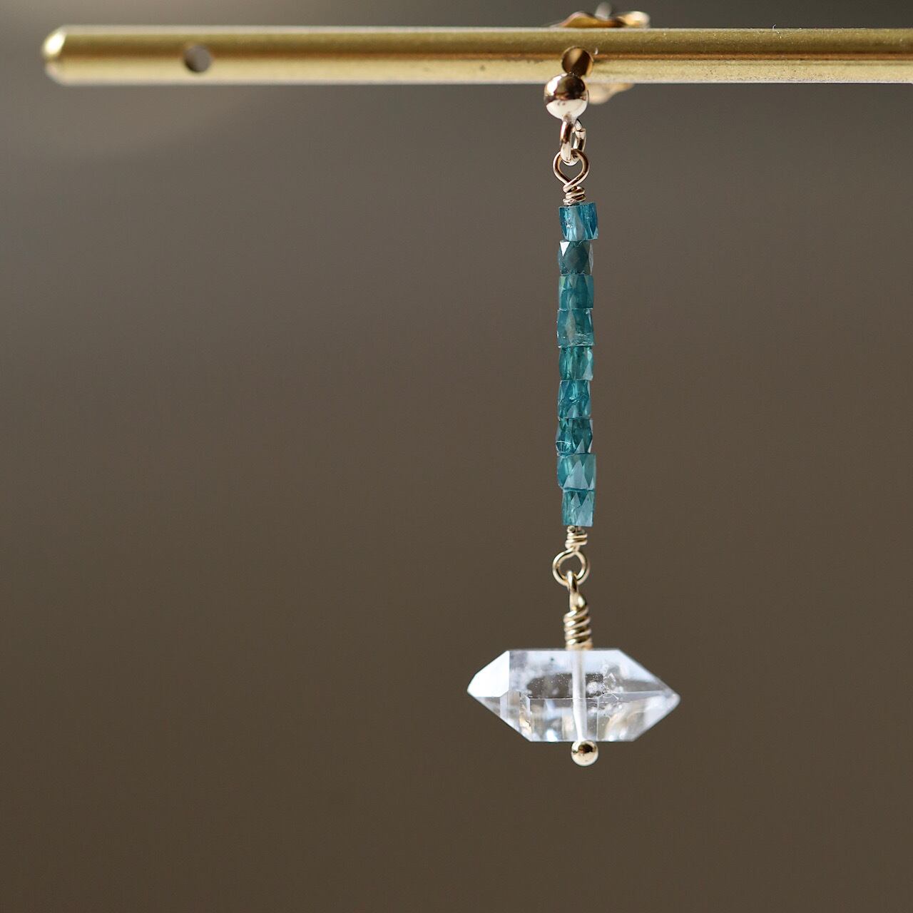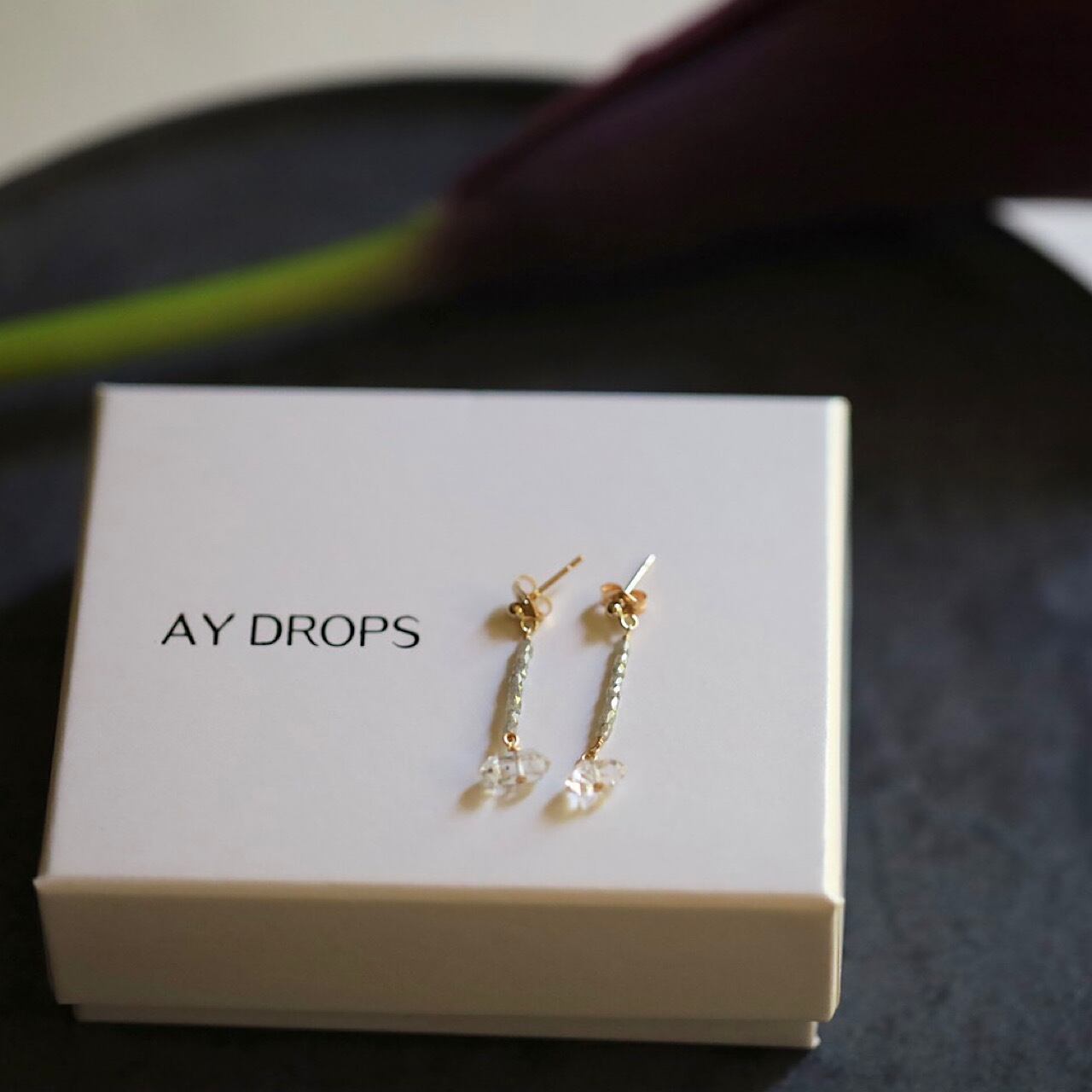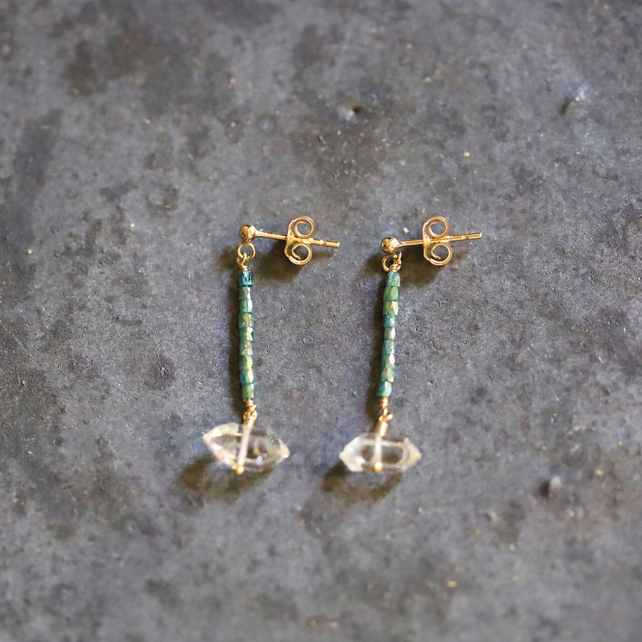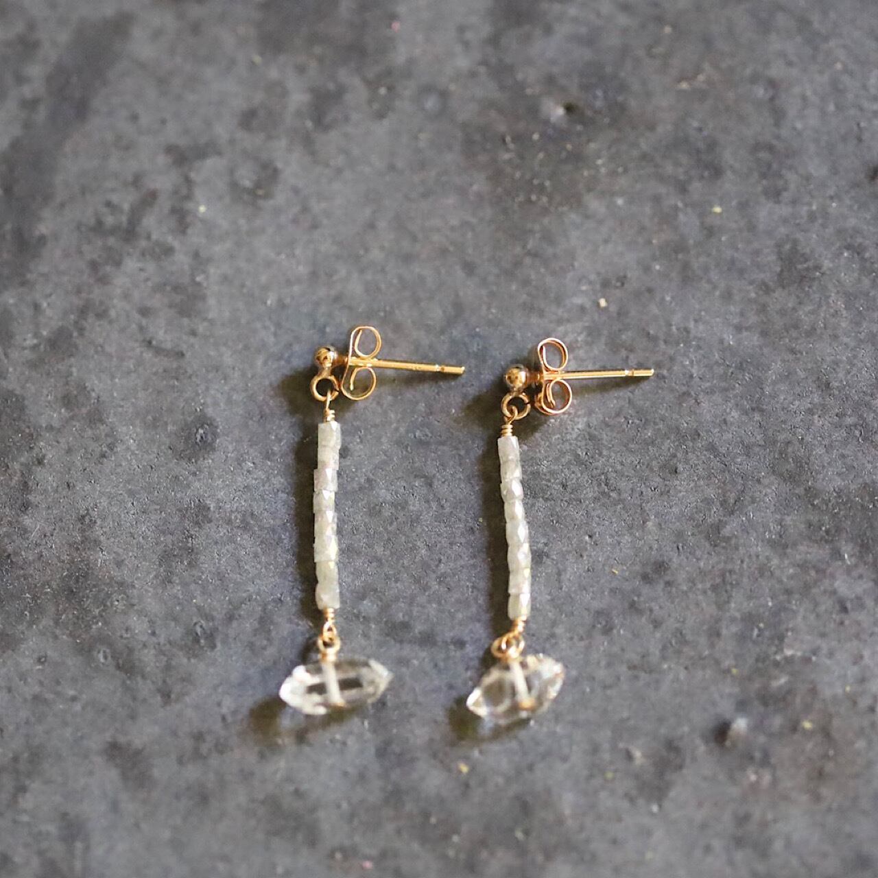 「water dragon」ダイヤモンドとハーキマーダイヤモンドの一粒ピアス