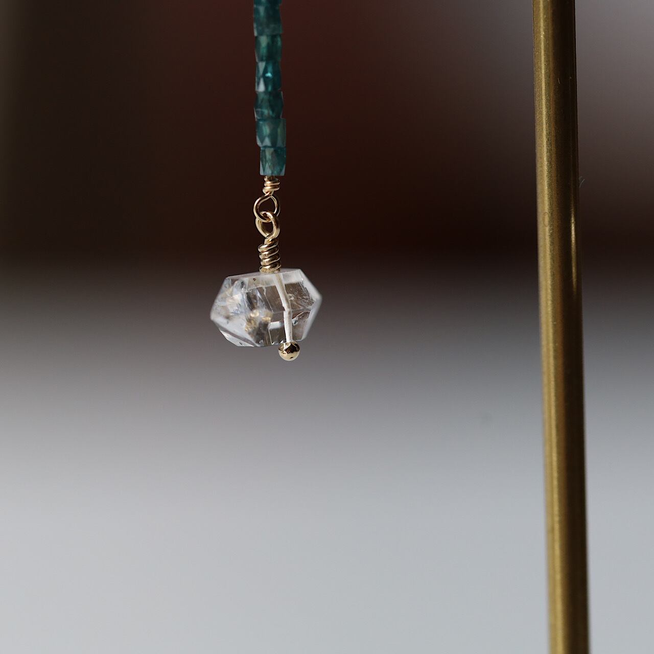 もっとも強く美しいダイヤモンドは歌うように煌めき、あなたの光をさらに輝かせてくれるよう。一粒の両剣の形のハーキマーダイヤモンドは必要なことを選び、不要なものを流してくれるサポートの石。