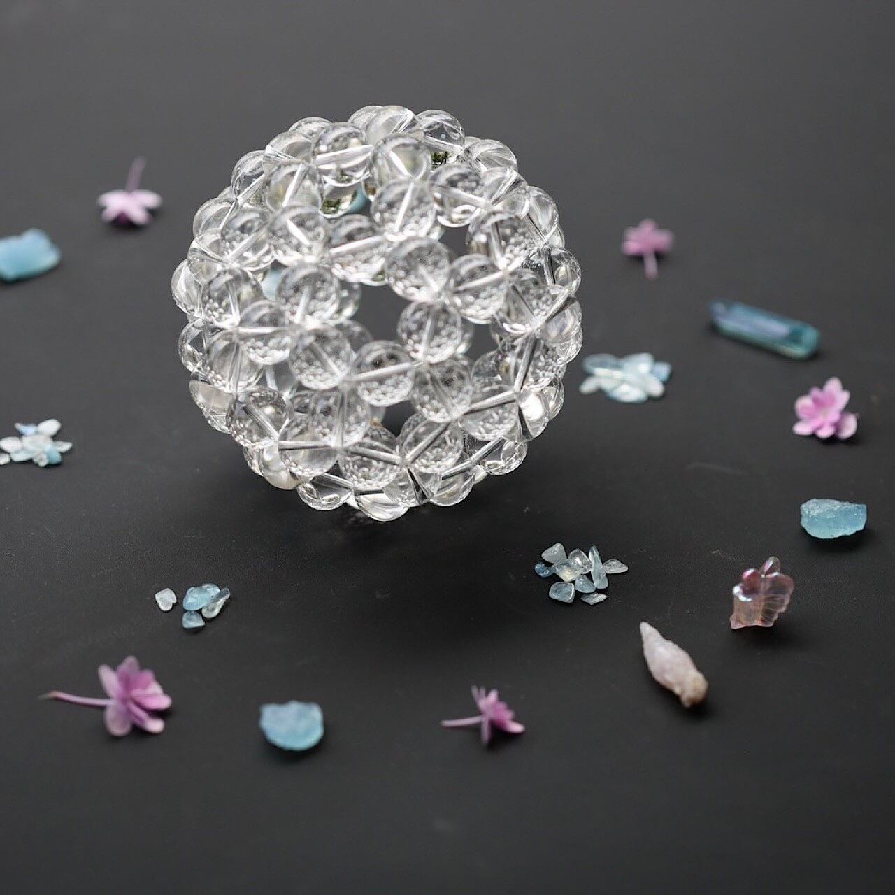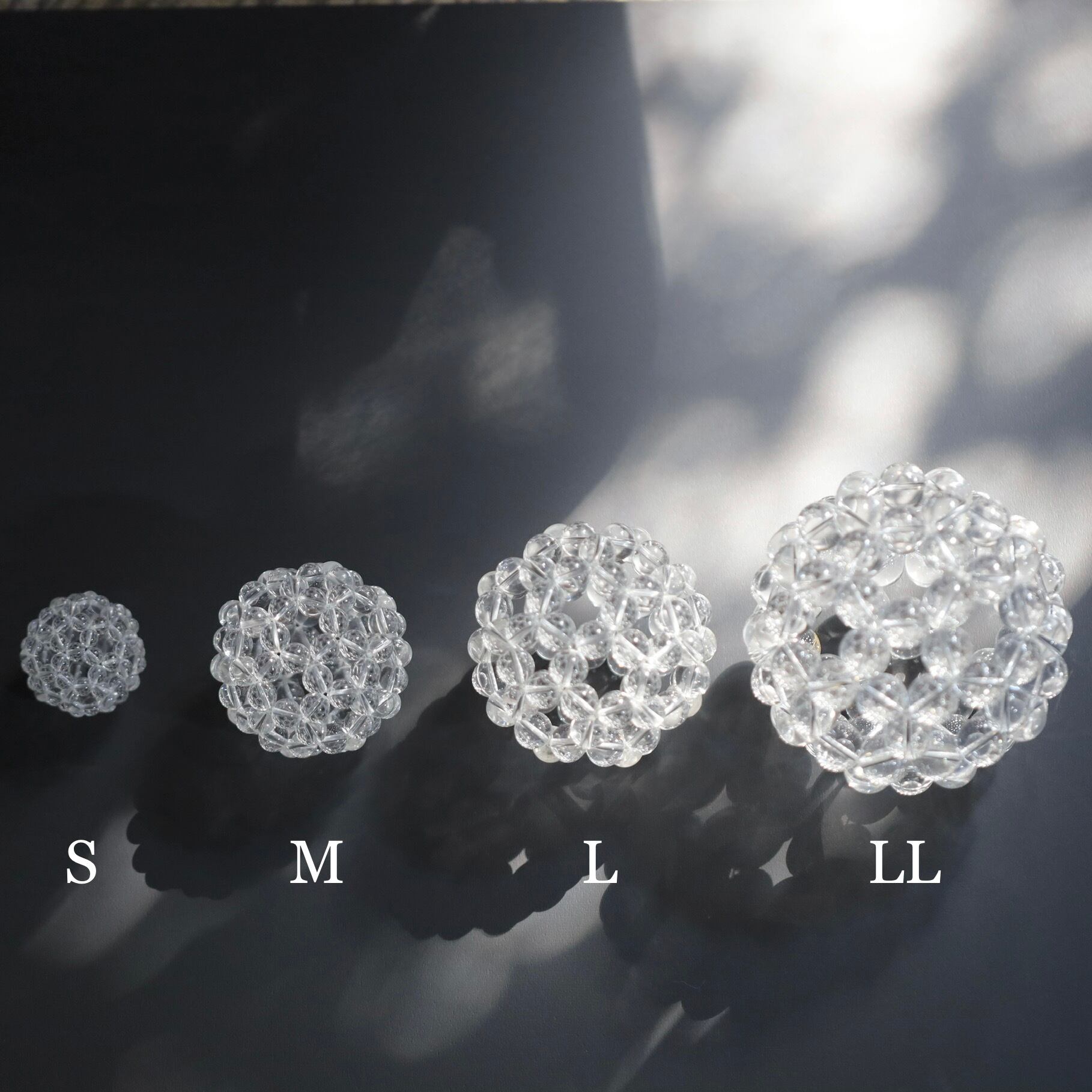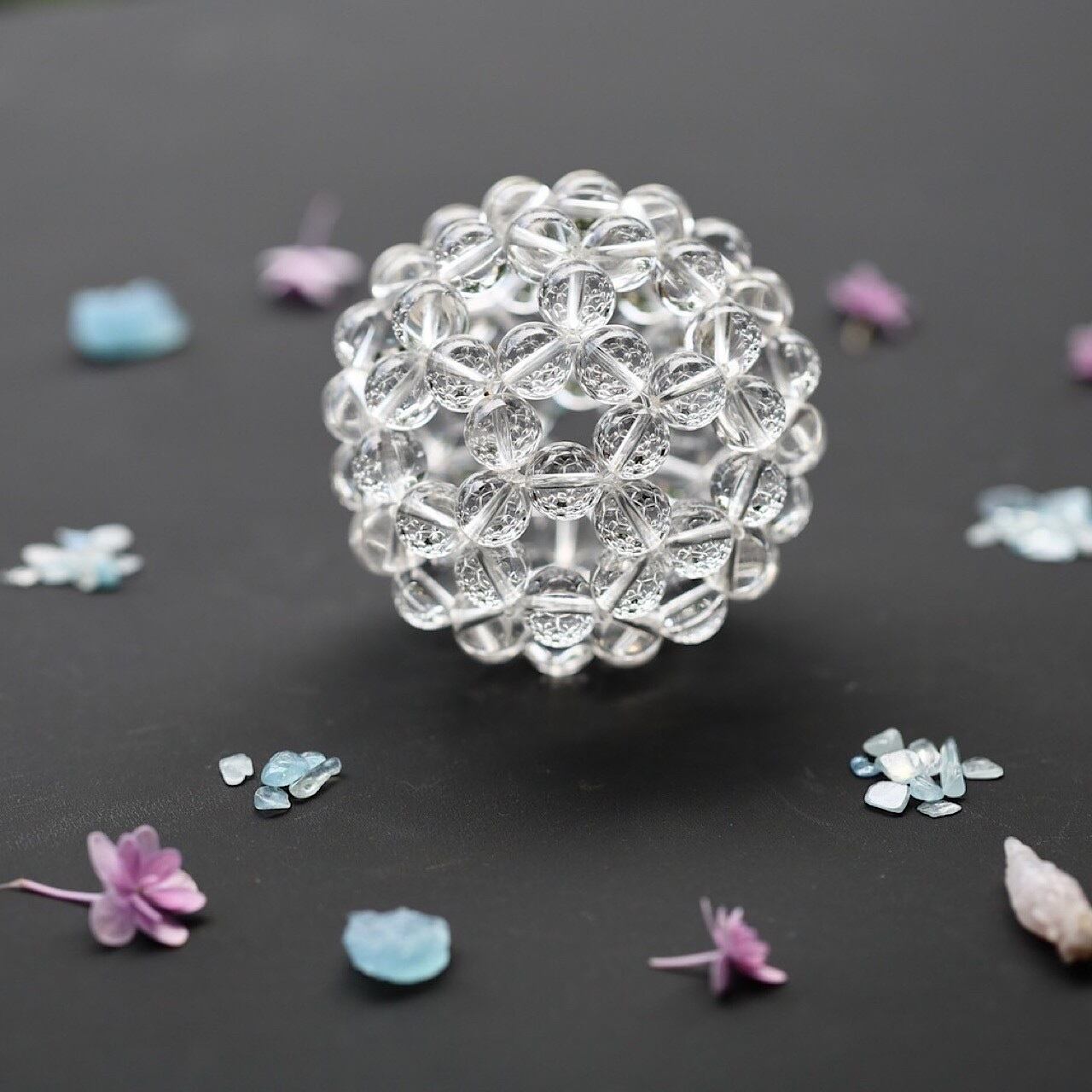 ※ハンドメイドのため強い力を加えるとテグスが切れてしまったり、形が崩れてしまうことがあります。お取り扱いにはご注意くださいませ。